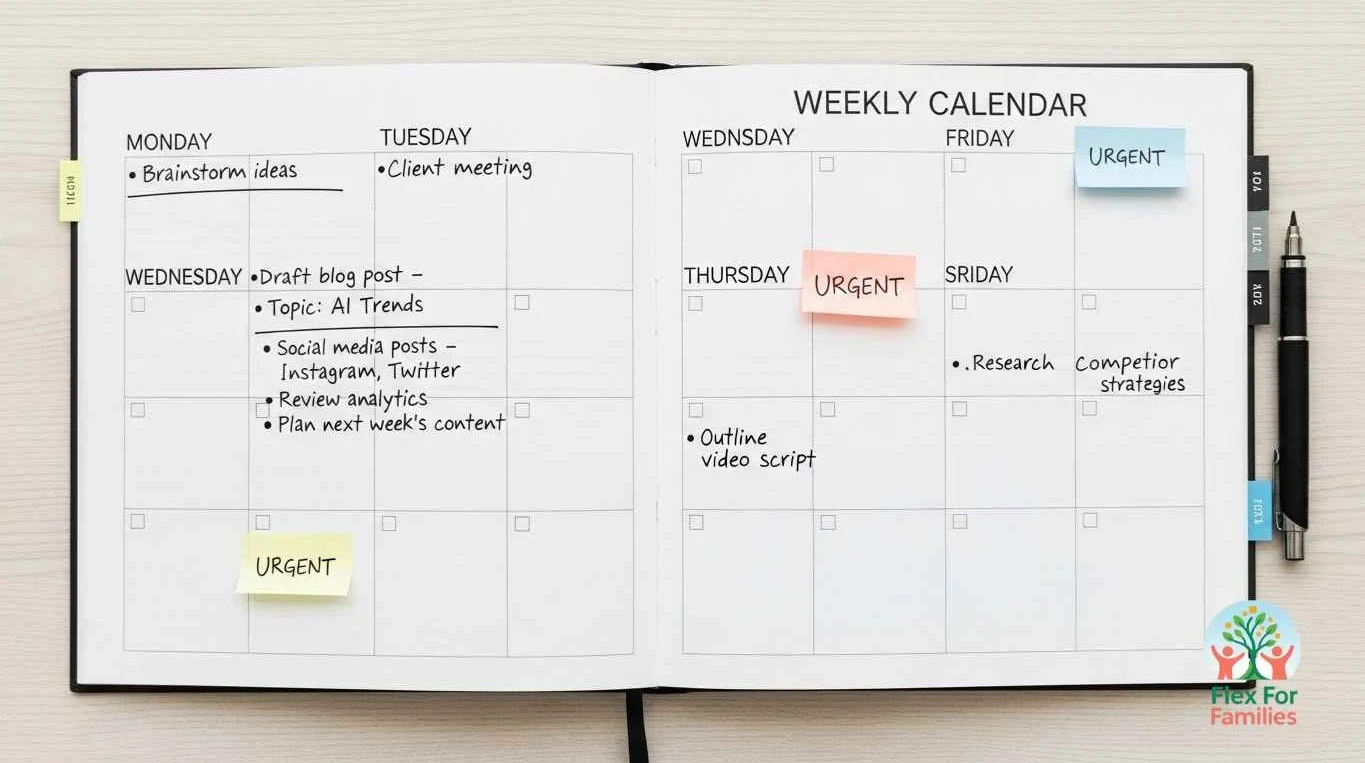 For parent bloggers, a simple rhythm works well: