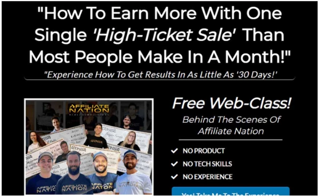If you’re comfortable with high risk, ads, and high-ticket funnels, Affiliate Nation might catch your interest.