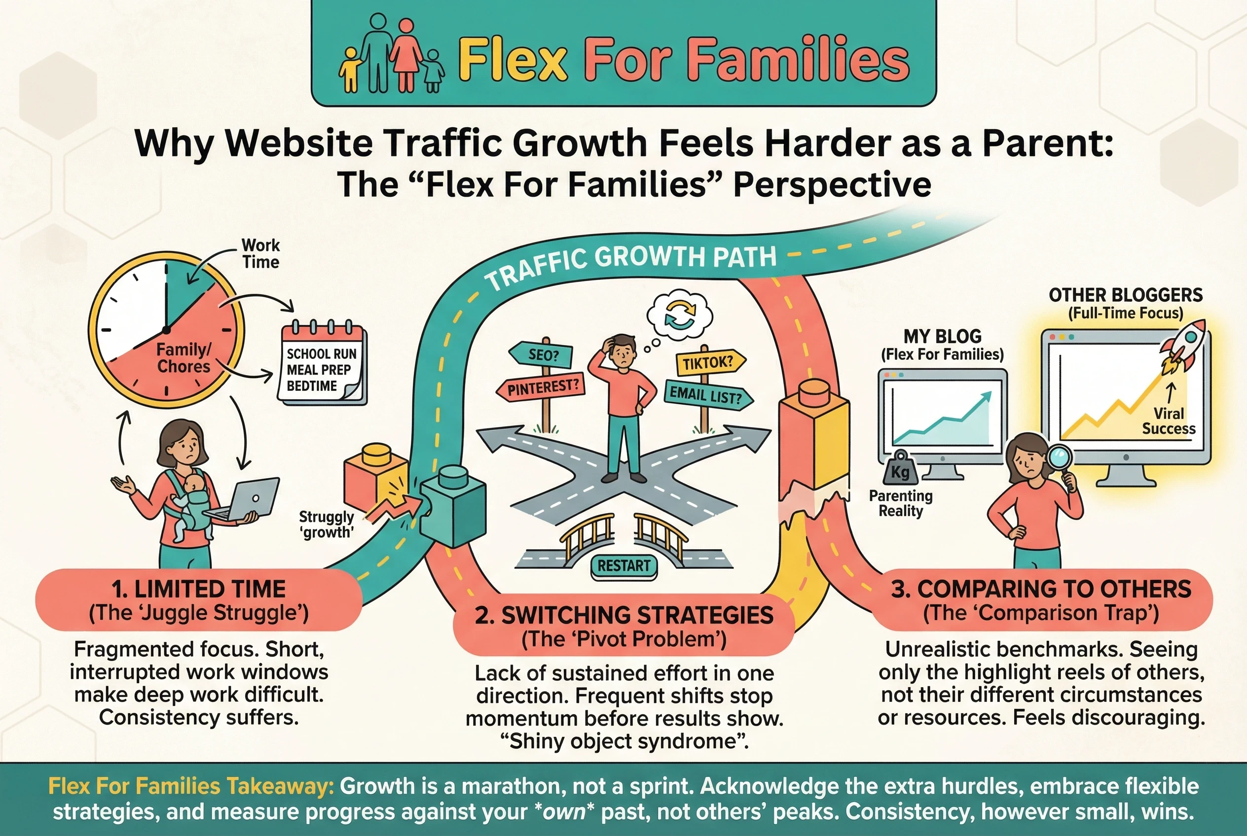 Growing blog traffic as a parent is not about doing more. It is about doing fewer things long enough for them to work.