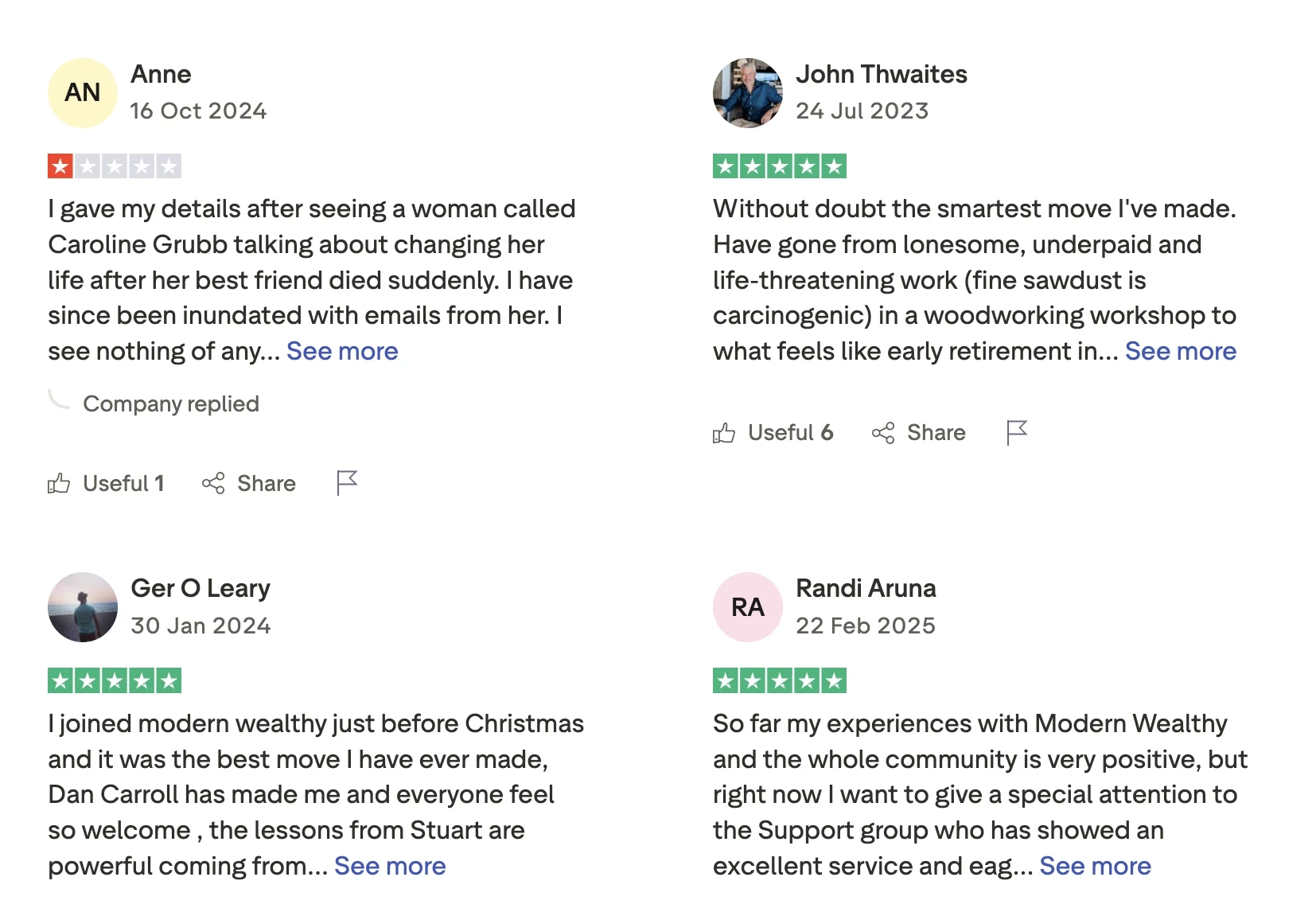 Feedback on Modern Wealthy is mixed. Some users say the program helped them understand the basics of online business, while others feel the content is too simple for real progress.