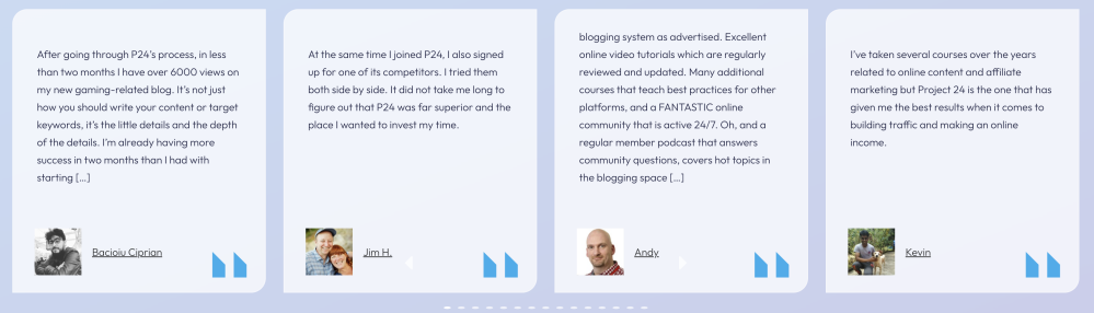 No, Project 24 by Income School is not a scam. It’s a legitimate and well-known training platform with a long track record of real students who’ve built blogs and YouTube channels that earn money. The creators are public figures, their business has been operating for several years, and there’s a transparent trail of testimonials and income reports.