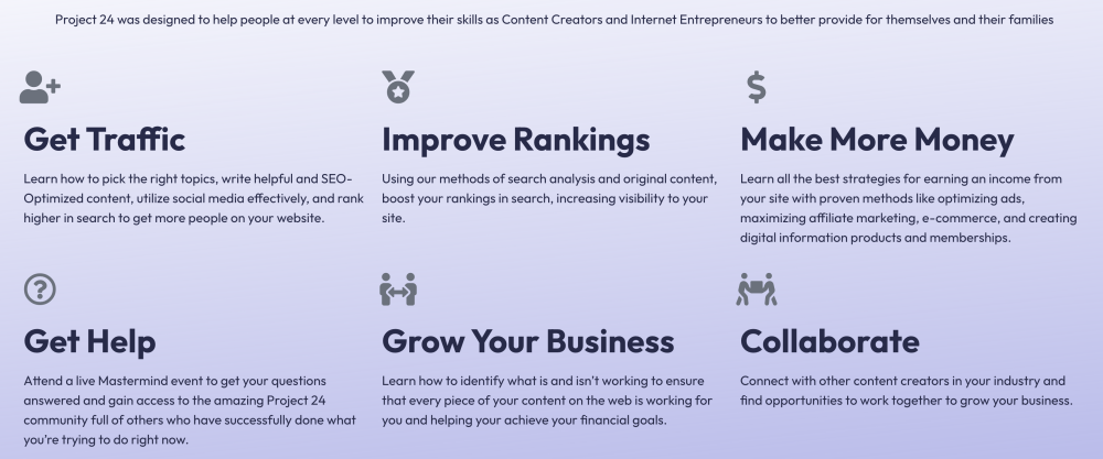 - Are already advanced in SEO, link-building and site scaling – Project 24 focuses on reliable foundational systems more than deep technical tactics.