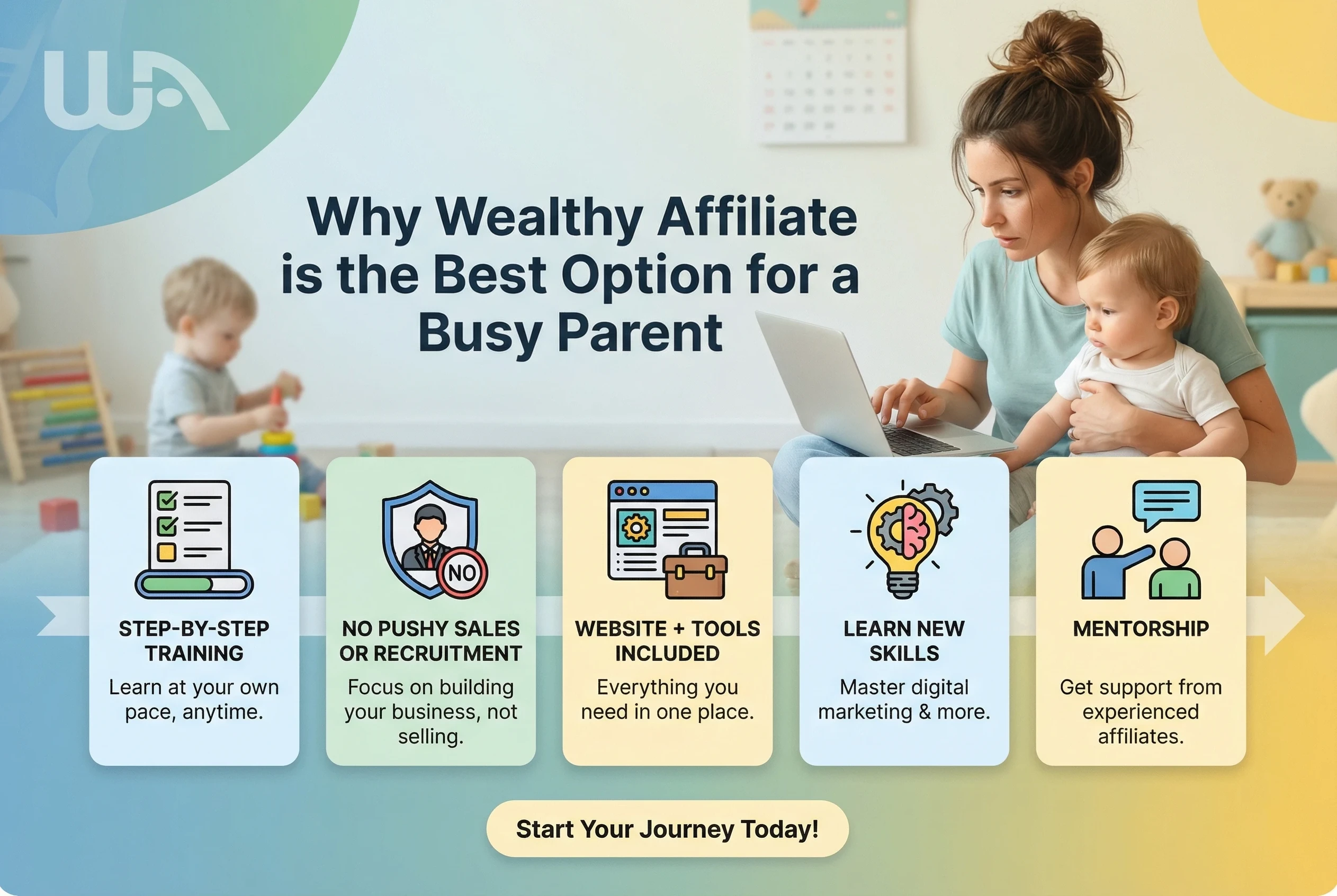 This is where platforms like Wealthy Affiliate help many parent bloggers. Not because they are perfect, but because they reduce friction. Hosting, writing tools, training, and community live in one place. That means fewer decisions and fewer tabs open.