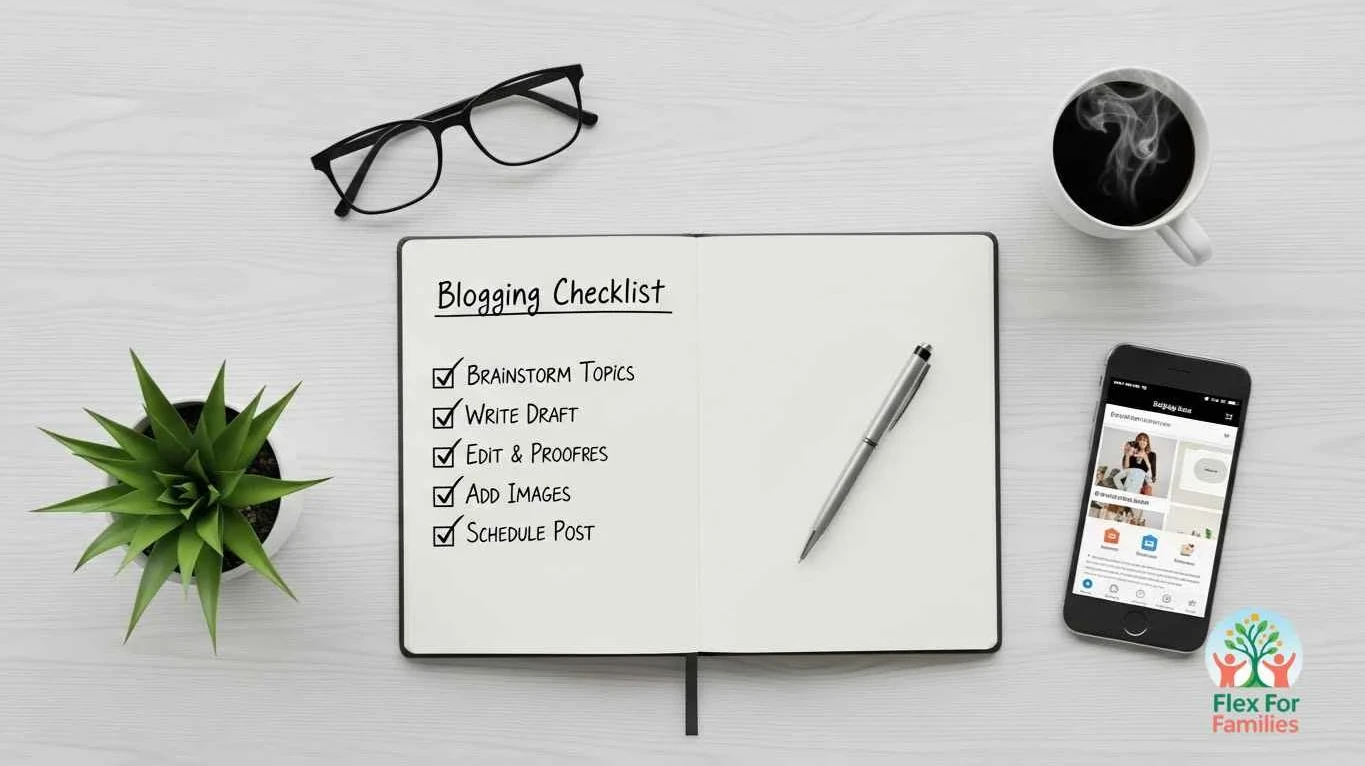 Short sessions are enough. Outlining, editing, or planning counts as progress. Many parent bloggers build entire posts in small chunks over several days.