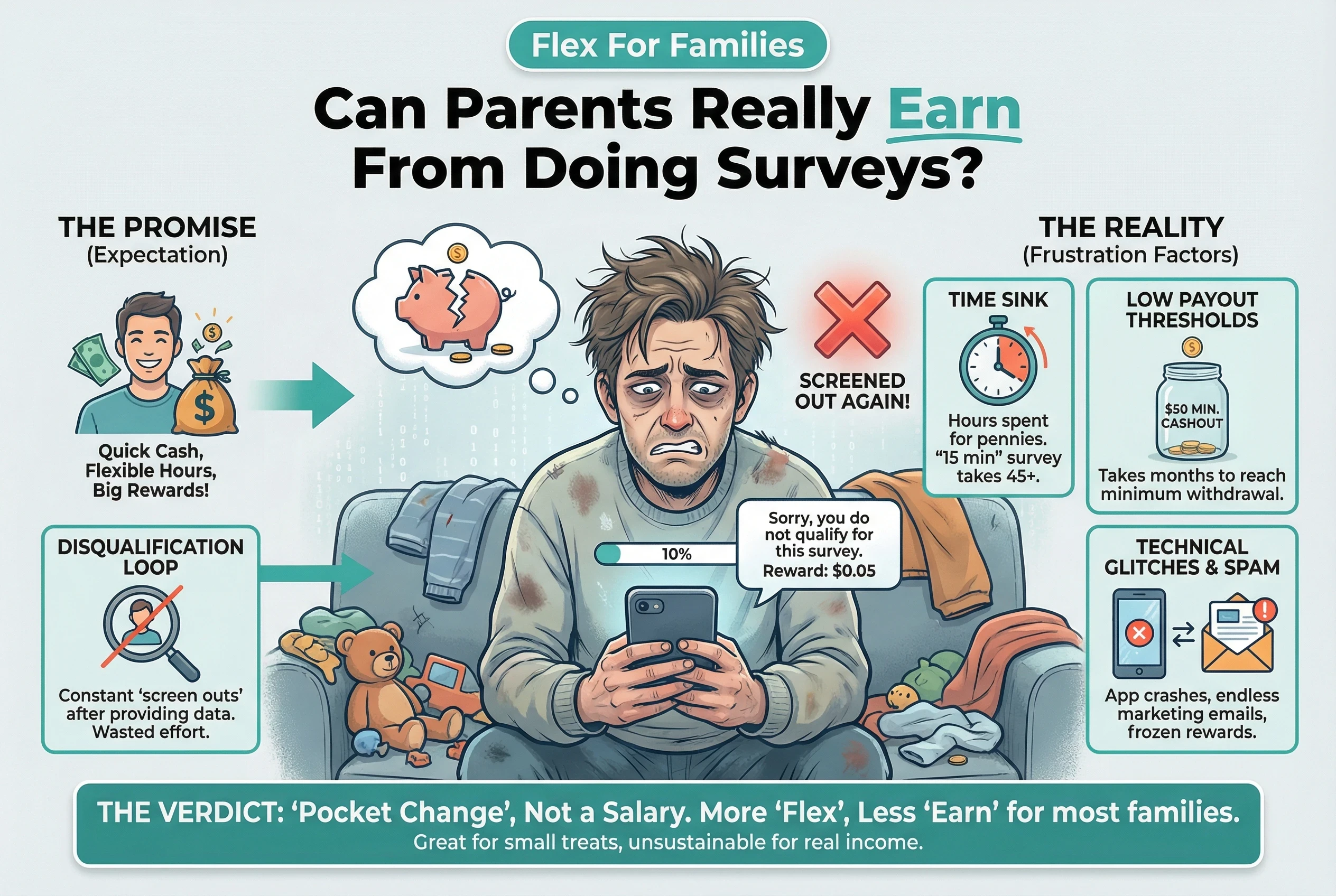 Parents, more than anyone, need the survey hustle to work. You want some flexible, honest extra cash you can earn during nap time or between school runs. When things slow down, it feels almost like a bait and switch.